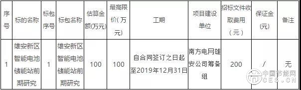 雄安新區(qū)智能電池儲(chǔ)能站前期研究項(xiàng)目招標(biāo)公告
