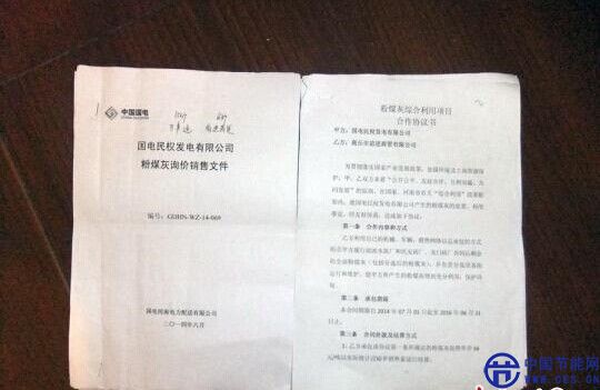 左為國電民權(quán)發(fā)電有限公司粉煤灰網(wǎng)上詢價(jià)文件,右為招標(biāo)結(jié)束后國電民權(quán)發(fā)電有限公司發(fā)給前進(jìn)商貿(mào)的協(xié)議書?!菗P(yáng)攝