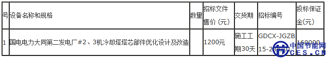 項(xiàng)目名稱: 國(guó)電電力大同第二發(fā)電廠 #2、3機(jī)冷卻塔塔芯部件優(yōu)化設(shè)計(jì)及改造項(xiàng)目(以下簡(jiǎn)稱“項(xiàng)目”)