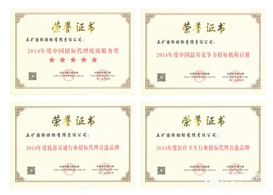 1999年3月,五礦國際獲得具有不受國別、金額限制的外國政府貸款項(xiàng)下一類采購資格。該公司還先后獲得國際招標(biāo)機(jī)構(gòu)甲級(jí)資格、工程招標(biāo)代理機(jī)構(gòu)甲級(jí)資格、政府采購代理機(jī)構(gòu)甲級(jí)資格、中央投資項(xiàng)目招標(biāo)代理機(jī)構(gòu)甲級(jí)資格等資質(zhì)。至今,五礦國際已獲得招標(biāo)領(lǐng)域的最高資質(zhì)。