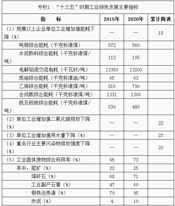 工業(yè)綠色發(fā)展規(guī)劃(2016-2020年)