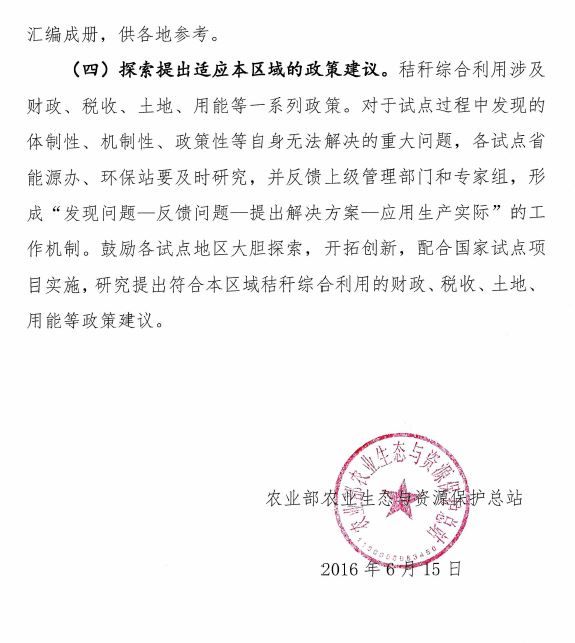 關于全程開展農作物秸稈綜合利用試點技術支撐的通知