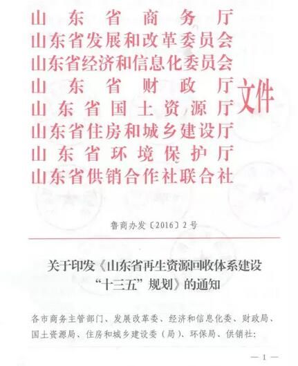 山東省再生資源回收體系建設(shè)“十三五”規(guī)劃