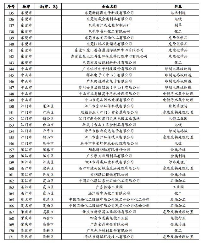 5.嚴防工礦企業(yè)污染。加強重點行業(yè)企業(yè)環(huán)境監(jiān)管,2017年底前,根據(jù)區(qū)域特征、行業(yè)類型、企業(yè)規(guī)模以及土壤環(huán)境質量狀況等,確定并公布土壤污染防治重點監(jiān)管企業(yè)名錄,有關地市人民政府要與重點監(jiān)管企業(yè)簽訂土壤污染防治責任書,并向社會公開。要全面排查工業(yè)固體廢物堆存場所,存在重大風險隱患的企業(yè)應制定整治方案并有序實施。廣州、深圳市需至少開展1項污水與污泥、廢氣與廢渣協(xié)同治理試點工作。(省環(huán)境保護廳、發(fā)展改革委、經(jīng)濟和信息化委負責)