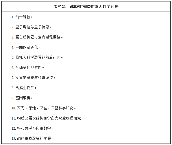面向2030年,再選擇一批體現(xiàn)國(guó)家戰(zhàn)略意圖的重大科技項(xiàng)目,力爭(zhēng)有所突破。從更長(zhǎng)遠(yuǎn)的戰(zhàn)略需求出發(fā),堅(jiān)持有所為、有所不為,力爭(zhēng)在航空發(fā)動(dòng)機(jī)及燃?xì)廨啓C(jī)、深海空間站、量子通信與量子計(jì)算、腦科學(xué)與類腦研究、國(guó)家網(wǎng)絡(luò)空間安全、深空探測(cè)及空間飛行器在軌服務(wù)與維護(hù)系統(tǒng)、種業(yè)自主創(chuàng)新、煤炭清潔高效利用、智能電網(wǎng)、天地一體化信息網(wǎng)絡(luò)、大數(shù)據(jù)、智能制造和機(jī)器人、重點(diǎn)新材料研發(fā)及應(yīng)用、京津冀環(huán)境綜合治理、健康保障等重點(diǎn)方向率先突破。按照“成熟一項(xiàng)、啟動(dòng)一項(xiàng)”的原則,分批次有序啟動(dòng)實(shí)施。