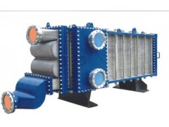 寬板片采用窩狀波紋或平板作為傳熱元件,兩張板片之間通過焊接形成板束,板束上下兩面設(shè)置兩塊壓緊板,通過夾緊螺栓壓緊固定,板束的兩側(cè)通過合頁與盲板、法蘭、分配箱等連接構(gòu)成整機(jī)。是專門為制糖、造紙、冶金 、酒精、化工、食品、燃料乙醇等行業(yè)生產(chǎn)工藝中,處理含有固體顆粒、纖維懸浮物、以及粘稠狀流體的加熱或冷卻而開發(fā)的新型焊接式板式換熱器,由于換熱板片的特殊設(shè)計,使換熱效率和壓降損失優(yōu)于其它換熱設(shè)備,并保證了寬間隙通道光滑,流體流動順暢、無滯留、無死區(qū),避免介質(zhì)中固體顆粒物或懸浮物的沉積、堵塞通道等現(xiàn)象的發(fā)生。