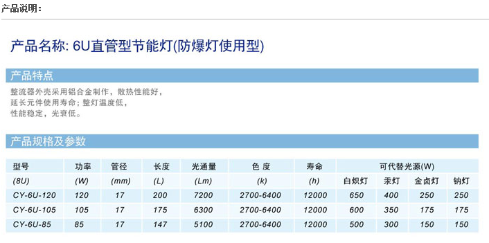 6U直管型節(jié)能燈(防爆燈使用型)