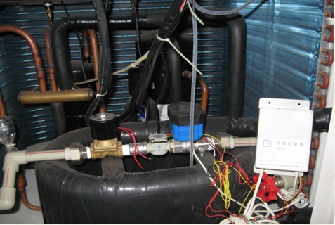 恒溫控制控制器由水流開關(guān)、電動(dòng)閥、補(bǔ)水閥、出去探頭組成。通電后電路板檢測(cè)高、中水位當(dāng)水位斷開后一分鐘補(bǔ)水閥打開,水流開關(guān)檢測(cè)流量(當(dāng)流量不足時(shí)報(bào) 警機(jī)器不啟動(dòng)),壓機(jī)、風(fēng)機(jī)啟動(dòng)做熱水,出去探頭把檢測(cè)到溫度反回來電路板,電路板發(fā)一個(gè)脈沖控制電動(dòng)閥調(diào)節(jié)閥門大小,從而控制水流量達(dá)到設(shè)定出水溫度。