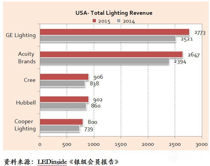 實(shí)際上,現(xiàn)在的CREE已經(jīng)不再適合定位為L(zhǎng)ED公司,而是一家十足的照明公司,最近幾個(gè)季度的表現(xiàn)來(lái)看,CREE的lighting產(chǎn)品已經(jīng)超過(guò)公司營(yíng)收規(guī)模的50%了。而在北美市場(chǎng),CREE的已經(jīng)晉升到了第三大照明廠商。