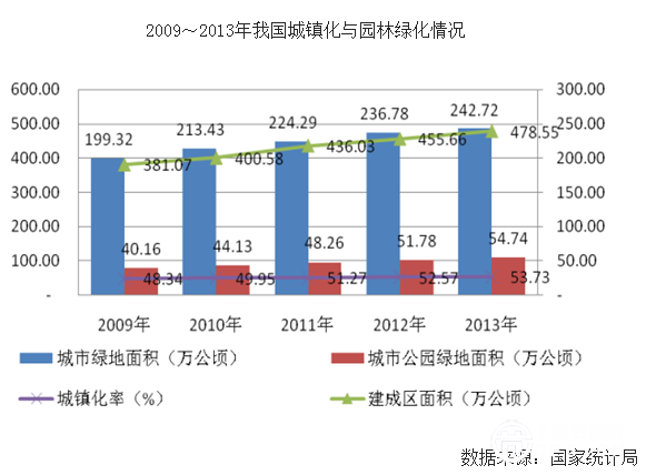 2、城鎮(zhèn)化帶動(dòng)園林綠化領(lǐng)域市場(chǎng)增長(zhǎng)