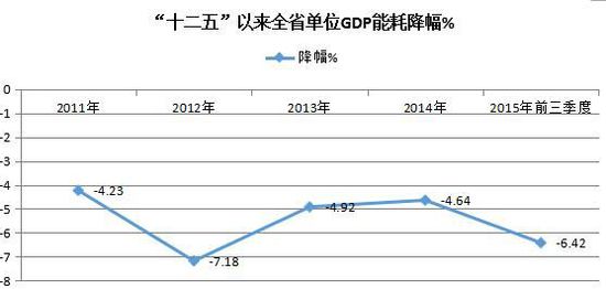 經(jīng)國家統(tǒng)計局核定,“十二五”前四年四川省單位GDP能耗分別下降4.23%、7.18%、4.92%、4.64%,累計完成目標進度的123.71%;2015年前三季度,全省單位GDP能耗下降6.42%,超額完成當年目標任務(wù)進度(見下圖)。預(yù)計全省可超額完成2015年和“十二五”單位GDP能耗分別下降2%和16%的節(jié)能降耗目標任務(wù)。