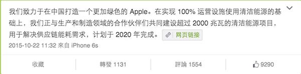 其實(shí),去年10月庫克第七次訪華時(shí),就曾在微博上宣布過這個(gè)計(jì)劃: