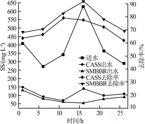 CASS工藝和SMBBR工藝對(duì)SS的去除效果對(duì)比見圖6。