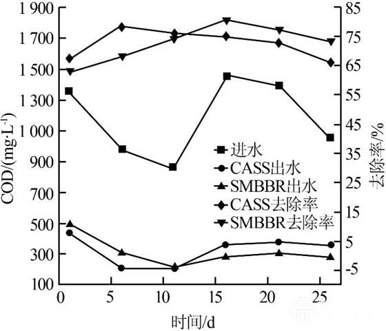 圖2-CASS和SMBBR對(duì)COD的去除效果