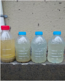 從左到右分別為餐廚生化垃圾處理機(jī)處理餐廚垃圾從初次啟動(dòng)到穩(wěn)定的結(jié)果,化水效果顯著。