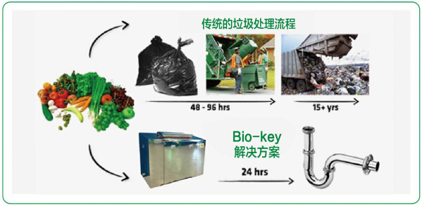 有別于傳統(tǒng)的餐廚垃圾處理流程,該設(shè)備可以做到垃圾從源頭減量,通過(guò)附著在BioStar載體上的微生物將物料分解為液體。處理周期<24h,減量率>95%。處理過(guò)程中無(wú)惡臭氣體產(chǎn)生,經(jīng)處理剩余的則是達(dá)到環(huán)保標(biāo)準(zhǔn)的水,可直接排放至市政管網(wǎng)或作為液態(tài)肥供給綠化園林,做到有機(jī)質(zhì)的循環(huán)利用。