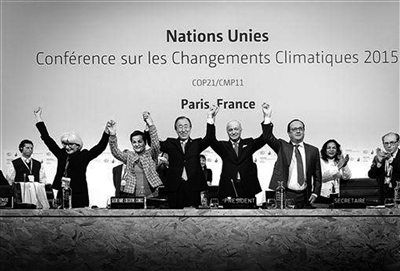 11月30日~12月12日,《聯(lián)合國氣候變化框架公約》第21次締約方大會在巴黎召開。大會通過的《巴黎協(xié)定》為2020年后全球應(yīng)對氣候變化行動做出安排,大會同意把全球平均氣溫較工業(yè)化前水平升高控制在2℃之內(nèi)。