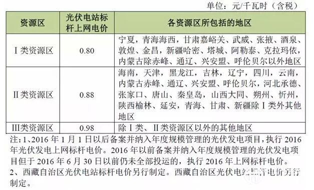 表1:全國光伏電站標(biāo)桿上網(wǎng)電價
