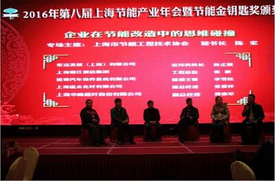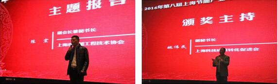“第8屆上海節(jié)能產(chǎn)業(yè)年會暨節(jié)能金鑰匙頒獎典禮”于2016年1月19日在古華山莊大酒店盛大舉行,此次年會由上海市節(jié)能工程技術(shù)協(xié)會主辦,上海市分布式能源產(chǎn)業(yè)技術(shù)創(chuàng)新戰(zhàn)略聯(lián)盟、上海市節(jié)能工程技術(shù)協(xié)會酒店分會、上海創(chuàng)新節(jié)能技術(shù)促進中心、國家城市能源計量中心(上海)、上海新能源科技成果轉(zhuǎn)化與產(chǎn)業(yè)促進中心、上海市電子電器技術(shù)協(xié)會等協(xié)辦,上海市節(jié)能工程技術(shù)協(xié)會奉賢分會、上海節(jié)能信息網(wǎng)(www.365jn.cn)承辦。年會以“創(chuàng)新創(chuàng)業(yè) 協(xié)調(diào)開放共享發(fā)展”為主題,旨在有效激發(fā)節(jié)能產(chǎn)業(yè)各方創(chuàng)新意識、協(xié)調(diào)各方資源,搭建優(yōu)質(zhì)資源與優(yōu)勢企業(yè)之間的合作橋梁,實現(xiàn)節(jié)能科技創(chuàng)新及資源對接的共享生態(tài)圈。上海節(jié)能產(chǎn)業(yè)年會已成功舉辦七屆,已在行業(yè)中形成了高度的權(quán)威性及強大的推動力,此次年會聚集了巨大的人氣和影響力。來自高??蒲性核靶袠I(yè)頂級專家、學(xué)者;節(jié)能技術(shù)產(chǎn)品的企業(yè)、節(jié)能服務(wù)公司、金融機構(gòu)、用能單位負責(zé)人等近300余人共聚一堂,圍繞節(jié)能產(chǎn)業(yè)發(fā)展趨勢和企業(yè)變革潮流,通過跨行業(yè)交流的思維碰撞,激發(fā)創(chuàng)新靈感,協(xié)調(diào)各方資源,論道2016節(jié)能產(chǎn)業(yè)的轉(zhuǎn)型升級,創(chuàng)新發(fā)展及道路的未來趨勢。