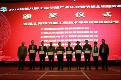 為表彰對節(jié)能產(chǎn)業(yè)做出卓越成績的企業(yè)、個人及機構(gòu),由上海應(yīng)用技術(shù)大學(xué)副校長陳東輝和上海市節(jié)能工程技術(shù)協(xié)會會長曹偉武為獲得2015年度上海節(jié)能金鑰匙獎的企業(yè)和個人頒發(fā)包含“最佳貢獻人物”、“節(jié)能技術(shù)創(chuàng)新企業(yè)”、“最佳能源管理企業(yè)”、“最佳‘互聯(lián)網(wǎng)+’企業(yè)”、“最佳客戶服務(wù)企業(yè)”等獎項證書,同時上海市節(jié)能工程技術(shù)協(xié)會秘書長陳宏為首批獲得上海市節(jié)能工程技術(shù)等級甲級資質(zhì)的企業(yè)頒發(fā)證書。
