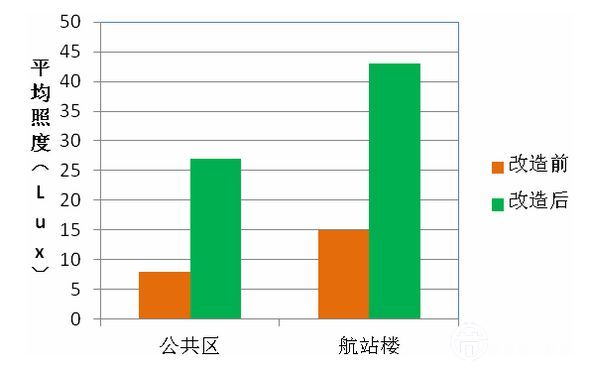 因傳統(tǒng)光源能耗大,為了控制能耗指標(biāo),呼和浩特機(jī)場照明燈具多根據(jù)晝夜長短、季節(jié)變化、日照強(qiáng)度,采用定時(shí)段、分批次開啟,加之燈具故障率高,呼和浩特機(jī)場航站樓、公共區(qū)照明存在明顯暗區(qū),對旅客服務(wù)質(zhì)量產(chǎn)生了一定的影響。采用LED燈具替換傳統(tǒng)光源后,照明效果顯著改善,除光照全面覆蓋外,經(jīng)測試各區(qū)域平均照度提升了近3倍。照度提升了,可是能耗卻下降了,2015年,呼和浩特機(jī)場航站樓照明年節(jié)省電費(fèi)39萬余元,節(jié)電率達(dá)60%,公共區(qū)照明年節(jié)省電費(fèi)近10萬元,節(jié)電率達(dá)66.1%。與傳統(tǒng)燈具能耗數(shù)據(jù)相比,新燈具每年可為機(jī)場公司節(jié)省電費(fèi)近49萬元,節(jié)能效果十分可觀。