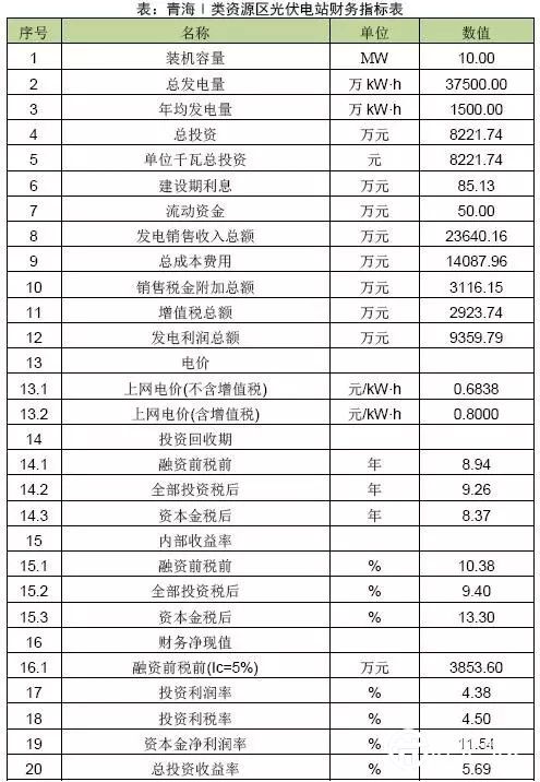 表4青海?、蝾愘Y源區(qū)光伏電站財務(wù)指標(biāo)表