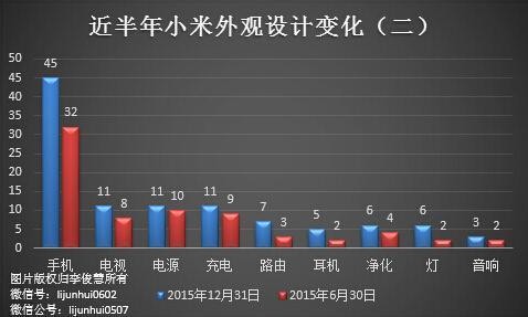 還有一點(diǎn)需要關(guān)注的是,在“支架、平板電腦、包裝、體脂稱、插頭、低音炮、感應(yīng)器”等領(lǐng)域,近半年小米并未獲得新的外觀設(shè)計(jì)授權(quán),而造成這種半年無(wú)變化的原因,可能有二,其一,此類產(chǎn)品可能市場(chǎng)反響一般,其二,此類產(chǎn)品的更新頻率較低。
