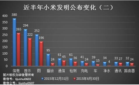 截止2015年12月31日,小米已累計(jì)獲得專利授權(quán)中,包括168件發(fā)明專利、198件實(shí)用新型專利和181件外觀設(shè)計(jì)專利。其中,這三項(xiàng)指標(biāo)在近半年內(nèi)都有較大幅度的增長(zhǎng)。