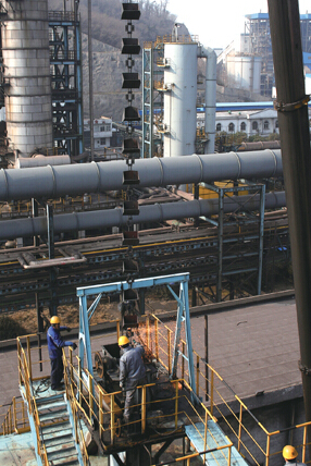 近日,馬鋼煤焦化公司新區(qū)分廠加大對(duì)除塵設(shè)備的技改與維護(hù)力度,確保其開(kāi)起率達(dá)到100%。圖為維護(hù)人員在更換干熄焦除塵系統(tǒng)鏈條斗提。