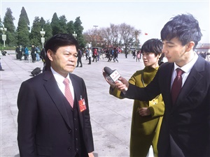 昨天上午,十二屆全國人大四次會議在人民大會堂開幕,國務(wù)院總理李克強作政府工作報告。開幕大會結(jié)束后,全國人大代表、亨通集團(tuán)董事局主席崔根良剛走到人民大會堂的臺階前,就被幾個眼尖的記者堵到了,他接受了央視、新華社、經(jīng)濟(jì)日報等媒體采訪,談了自己聆聽政府工作報告的感受,提出民營經(jīng)濟(jì)在“十三五”期間要有更大作為。