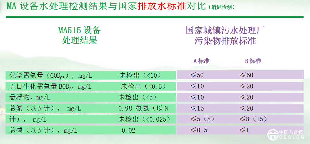 注:MA設(shè)備的出水質(zhì)量,遠(yuǎn)遠(yuǎn)優(yōu)于國(guó)家規(guī)定的回用水標(biāo)準(zhǔn),完全可做中水用作沖廁、城市綠化以及消防用水等。