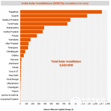 清潔能源通訊和咨詢公司Mercom Capital Group發(fā)布其印度光伏市場季度更新--宣布該公司2016年太陽能裝機(jī)總量將超過4GW。