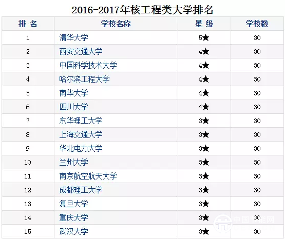 2016-2017年核工程專(zhuān)業(yè)類(lèi)本科大學(xué)排名