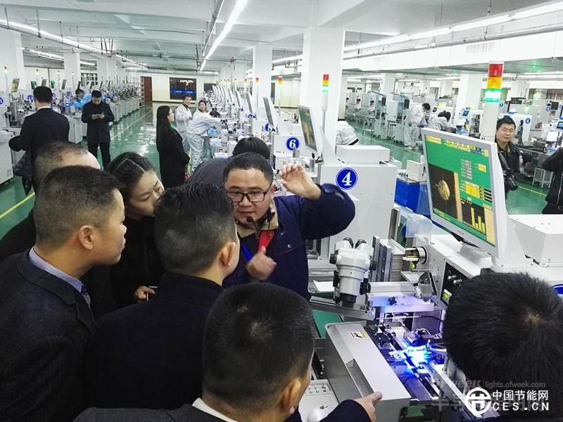 圖說:嘉德資本眾籌股東們參觀晶正照明全自動(dòng)生產(chǎn)車間
