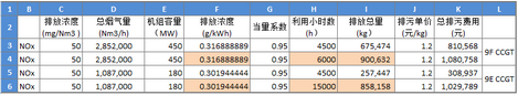 最后,用同樣方法對(duì)燃?xì)怆姀S的NOx排放總量進(jìn)行計(jì)算,我們可以發(fā)現(xiàn),在同樣的NOx排放濃度(mg/Nm3)時(shí),燃機(jī)的度電排放量是要比燃煤的差不多翻倍的。如拿9F級(jí)聯(lián)合循環(huán)機(jī)組及9E級(jí)聯(lián)合循環(huán)機(jī)組的煙氣量進(jìn)行計(jì)算,如NOx排放濃度都是50mg/Nm3,則在與超低排放煤電機(jī)組發(fā)同樣多電量的情況下(粉紅背景色部分),燃機(jī)的NOx的排放總量則要比煤電大約1.8倍哦!想不到吧?
