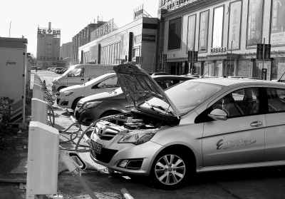 昨天,在南四環(huán)大紅門集美家居廣場上,多輛新能源汽車正在充電樁前充電。集美家具城在非首都功能疏解過程中,關停了窗簾、皮草賣場,引進新能源汽車企業(yè),進行充電樁、新能源汽車的研發(fā)、展示、推廣等,計劃建成300個充電樁的充電站,目前已建成33個。
