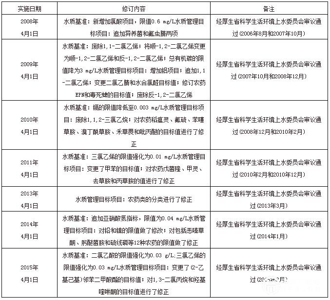 日本飲用水水質(zhì)基準(zhǔn)修訂主要記事