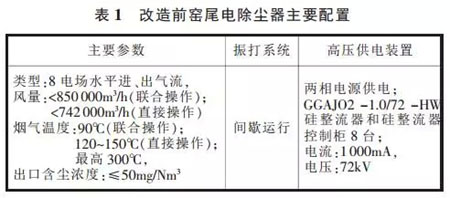 1窯尾電除塵系統(tǒng)配置及改造方案