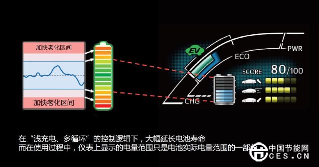 豐田雷凌雙擎通過電池管理系統(tǒng),將電池容量控制在一定的范圍內(nèi),同時(shí)發(fā)揮鎳氫電池在此區(qū)間循環(huán)壽命長(zhǎng)的優(yōu)勢(shì),實(shí)現(xiàn)電池的“淺充電、多循環(huán)”,避免過充過放電導(dǎo)致的加快老化,從而保證電池的使用壽命。