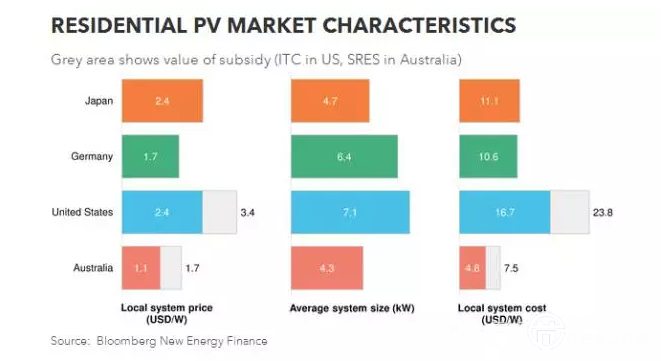 目前,美國住宅光伏系統(tǒng)的成本大約是其他成熟市場的2倍??蛻舻馁彽贸杀尽@準成本、其他軟成本,以及金融產(chǎn)品的成本都會使小型光伏系統(tǒng)的價格高居不下。