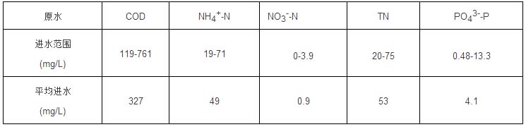 進(jìn)水水質(zhì)見表1,去除率見表2