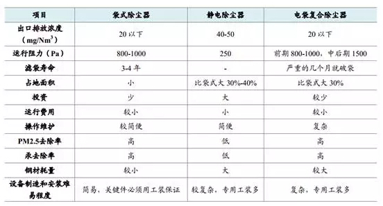 三種除塵器技術(shù)經(jīng)濟性能比較
