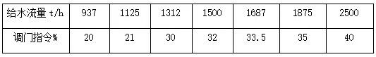 2) 除氧器上水調(diào)門(mén)邏輯:A凝結(jié)水泵變頻運(yùn)行,B凝結(jié)水聯(lián)啟時(shí),超弛關(guān)除氧器上水調(diào)門(mén),其閥位指令為B凝結(jié)水泵聯(lián)啟時(shí)當(dāng)時(shí)給水流量的函數(shù),為線性關(guān)系。