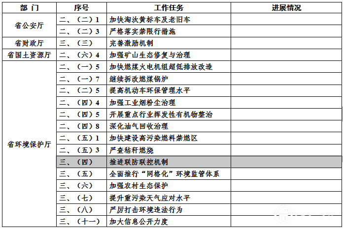 (二)建立工作進展情況動態(tài)報告制度。各市(區(qū))要逐月確定重點工作任務,每月10日前向省大氣污染治理辦公室(聯系人:高翔,電話:029-87292113)報告上月重點工作任務完成情況和當月的重點任務計劃。省級各相關部門要對牽頭和負責的工作制定工作計劃,加強督辦,每月5日前向省大氣污染治理辦公室報告牽頭和負責的工作任務上月完成情況(詳見附件2)。省大氣污染治理辦公室每季度對各市(區(qū))及省級部門任務完成情況進行通報。(各市政府、省級各有關部門分工落實負責)