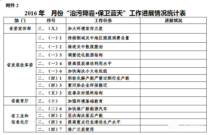 2.2016年月份“治污降霾˙保衛(wèi)藍天”工作進展情況統(tǒng)計表