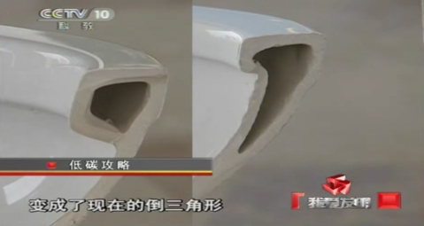 傳統(tǒng)馬桶(左)與超旋風(fēng)(右)導(dǎo)水圈刨面對(duì)比