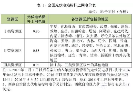 光伏電站:根據(jù)各地太陽能資源條件和建設(shè)成本,將全國分為三類標(biāo)桿上網(wǎng)電價(jià)區(qū),相應(yīng)制定光伏電站標(biāo)桿上網(wǎng)電價(jià)。