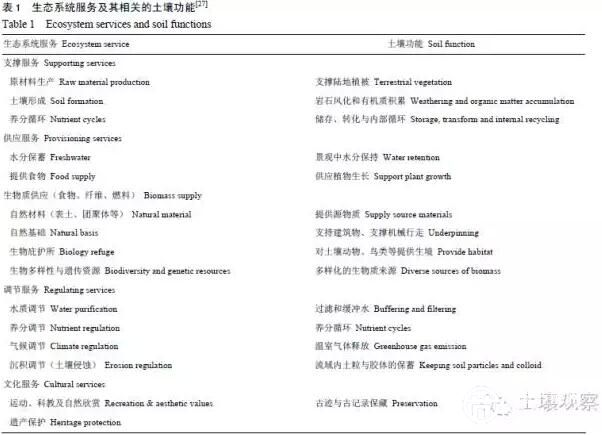 最近,聯(lián)合國糧農(nóng)組織在組織編制世界土壤資源態(tài)勢報告時,重新定義和厘清了生態(tài)系統(tǒng)服務(wù)及其與土壤功能的關(guān)系(表1)。