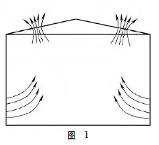 側(cè)面吹風(fēng)、上方抽風(fēng)把含塵空氣吹到廠房頂端,用風(fēng)機(jī)把含塵空氣抽排出去,如圖1所示。