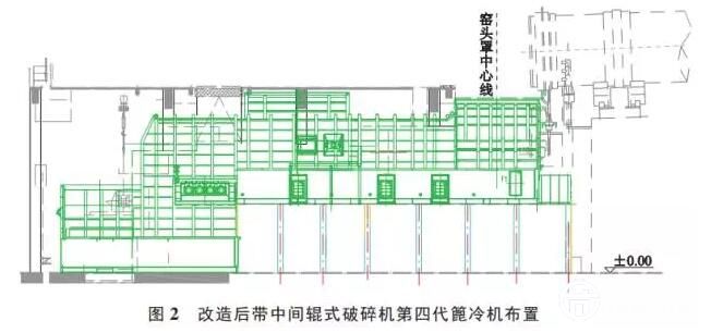 方案三:第三代篦冷機(jī)增加中間輥式破碎機(jī);